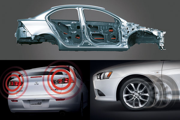 底盤部分,在前獨立麥花臣/後獨立多連桿式懸吊(附防傾桿),結合高強度橫樑基礎結構下,Lancer iO的懸吊系統全面強化,具備國產同級車中唯一經原廠調校、專供運動型房車使用的MDSS運動化懸吊系統(Mitsubishi Dynamic Suspension System),其彈簧、減震筒與防傾桿均以Lancer EVO車款參加賽事獲取之經驗為藍本,優先考量操控性調校而成,不但減震筒阻尼增加,彈簧磅數也增加,防傾桿的直徑更為加粗,再搭配同級車唯一的引擎室拉桿增加車身剛性,創造出更穩定的操控與更精準的動態反應。
