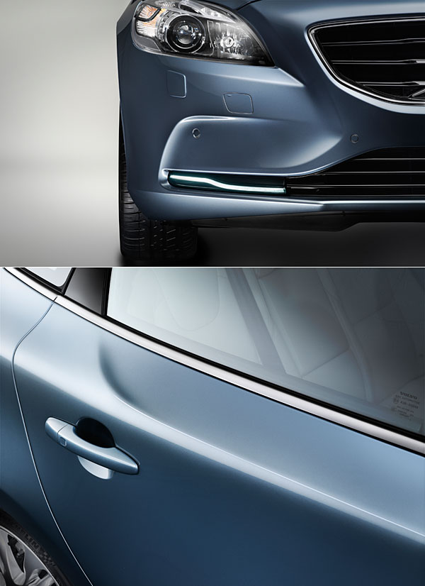 近年來Volvo展現出的設計能量,在V40身上獲得了全盤的接收。或許在S60SV60上,許多車迷已見識到了原廠設計團隊展現出的前衛魅力,但從此次的V40造型設計中,你絕對可以再次感到驚豔,全車幾乎沒有一處平整的鈑件平面,而是以豐富曲線、折曲與隆起,展現出此級距該有的活力與動能;無論是引擎蓋那兩側的摺痕、車頭水箱罩向兩側拋出的上下力道、貫穿車側的立體肩線到C/D柱處更高聳的隆起、車尾上方多出三道直立尾鰭的尾翼還是更為窈窕的尾燈線條等,在V40身上,從頭到尾都是令人訝異的設計亮點,不僅樹立了Volvo品牌未來設計風格更佳的典範,正式導入市場後,也相信絕對是給予對手壓力的重要一環。