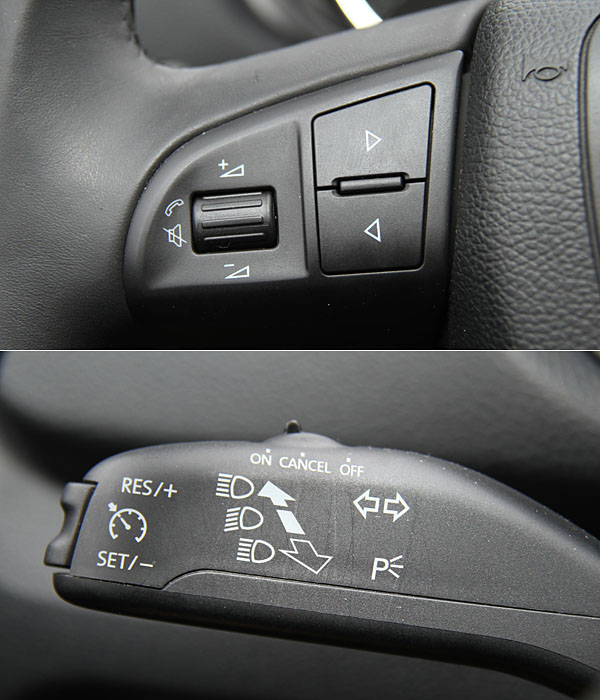 多功能方向盤的操作介面集中於左側,後方撥桿也具備定速功能。