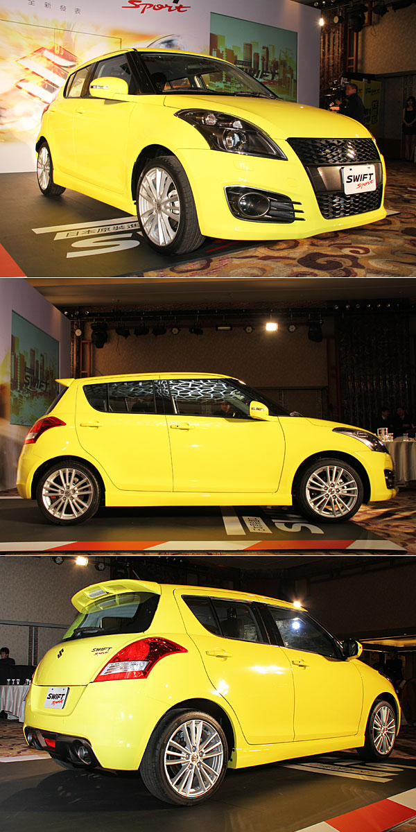自去年東京車展發表了五門車型後,金鈴汽車便迅速的於2012年台北車展引進展出,企圖心可見一斑;經過約莫兩個月的準備,3月8日全新Swift Sport正式在台發表。考量台灣市場屬性,Swift Sport引進車型除了1.6L動力系統外,搭配CVT無段變速系統,期望於性能與節能表現上獲得更佳平衡。