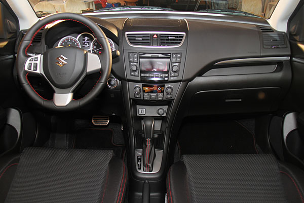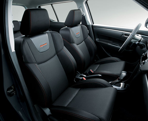 Swift Sport控台設計以黑與銀雙色為主調,金屬感五環式儀表則結合功能性與設計;原廠跑車式桶椅的改良式側面支撐包覆,提供駕駛者更佳的包覆性。此外,Swift Sport添加多種貼心裝置,包含方向盤換檔撥片,能讓駕駛者可更即時的變換檔位;Push Start引擎觸控啟動系統,當駕駛者靠近愛車80公分的距離中,不需鑰匙只需輕壓門把上的按鈕即可開啟車門,坐定位後也只需輕壓Push Start引擎觸控啟動鈕,便可發動引擎輕鬆上路;音響配備整合CD+MP3播放多功能音響,並結合方向盤音響快撥鍵,手不需離開方向盤就可控制音量、選曲,方便又安全;USB連接孔方便將隨身碟或MP3連接至音響設備,隨時享受曼妙樂曲的乘駕樂趣。
