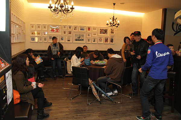 展示間一偊車友們互相寒暄聊著車經,度過一個最具Vespa味的週末下午。