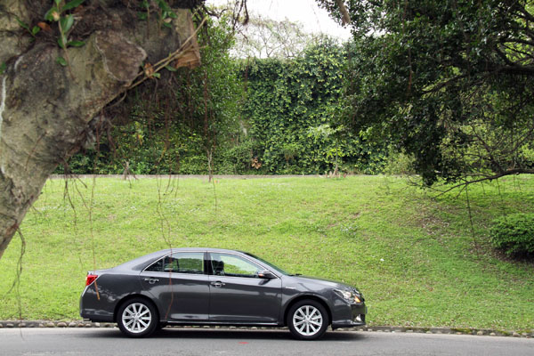 至於在節能表現部分,試駕當天僅開了約52公里,但行駛路段包含了:高速公路、市區街道與山區彎道,在未刻意採省油模式駕駛下,行車電腦所顯示的平均油耗為12.1km/L,而根據其配置之能源監視系統的紀錄顯示,在我們試駕之前,各家媒體試駕後最佳的平均油耗成績為12.7km/L,距離原廠所公佈的19.4km/L平均油耗數據有一些落差,但在考量日常使用方式與實驗室測試條件有所不同,其油耗表現還在可接受範圍內,但依據過去經驗,相較於傳統汽油或柴油動力車款,皆較能夠做出相近於原廠數據的表現,幾次試駕Toyota集團旗下之油電複合動力車款,都不太容易跑出如原廠數據般的亮眼成績。歸納其原因,駕駛傳統汽油或柴油動力車款,只要控制好引擎轉速或維持油門深度,就可以達到不錯地節能效果,但是在如Camry Hybrid者種採串並聯複合動力的車款上,得不斷注意動力系統的切換,不僅得注意動能輸出錶讓動能輸出盡可能維持在eco範圍內,還得一邊注意電池蓄電量是否足以讓車輛可以用更長的時間使用電力驅動,以達到更好的省油效果,對於駕駛的負擔反而更重;不過與Prius或Lexus CT 200 h相比,Camry Hybrid在整體電池容量與動力輸出皆較充足下,在高速巡航時使用電力驅動的續航力較佳,改善了CT 200 h在於高速巡航下當系統自動切換至電力驅動後,就出現動力不足以負荷定速巡航的情形,可增長電力驅動的時間。