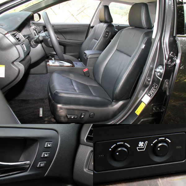 Camry Hybrid-Q頂級車型座椅皆使用Eagle Ottawa所生產的Nappa級皮革包覆,前座座椅亦具備電動調整/通風功能,駕駛座另設有兩組記憶機能,便於車主使用。