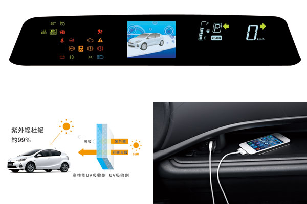 同時,Prius c 也為女性消費者提供了UV抗紫外線玻璃及靜電吸附式濾網二大貼心配備;全車玻璃可有效杜絕99%紫外線,保護皮膚不受陽光刺激,而靜電吸附式濾網則能適時去除車內異味並過濾空氣中花粉及微塵等過敏原,讓女性消費者能盡情享受開車樂趣。