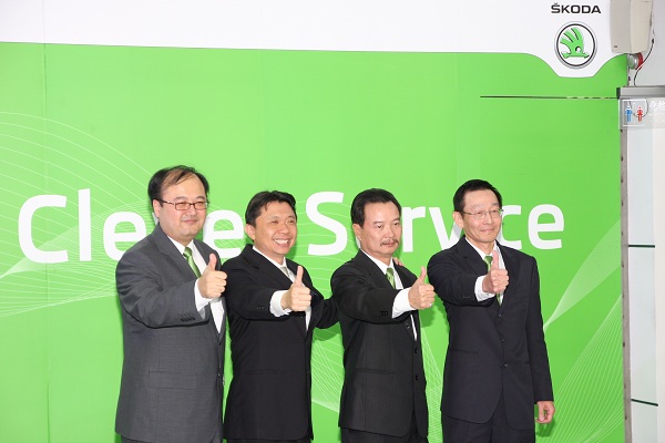 (左一)SKODA副總經理黃啟鑫 (左二)SKODA總經理高振榮 (左三)SKODA喬順汽車總經理陳慶聰 (右一)SKODA服務部副總經理褚大為
