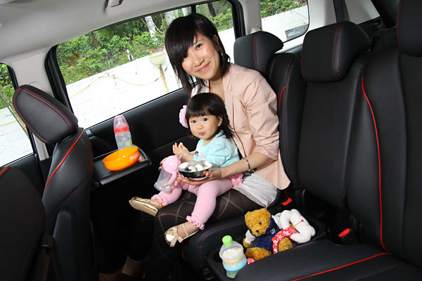 乘載無數幸福家庭的國產七人座轎式休旅車All New Mazda5,擁有同級車獨家雙電動滑門設計,並具備遙控開啟功能,即使抱著小朋友,手拿大包小包,也能輕鬆上下車,不會面臨傳統車門在兩側空間不足時車門無法完全打開的窘境。All New Mazda5的日式精緻內裝設計,提供質感優異、寬敞舒適的乘坐空間,獨家6+1座Karakuri座椅設計,使第二排座椅可自由變化兩座/三座模式,具備中央走道、置物托盤、椅面下隱藏置物空間等機能,實用又方便!同級車獨家的後座折疊餐盤設計,對家中有小baby的家庭來說,更是不可多得的超方便配備,無論泡牛奶、用餐、或隨手放置小朋友的玩具或雜物都非常就手,讓身為媽媽的QQmei讚不絕口!可平整收折的二、三排座椅,在五人座模式下可以提供超大行李空間,可輕鬆放下全家出遊的行李、安全座椅、嬰兒推車等物品,若將二、三排座椅都收折,連腳踏車都能直接放入!