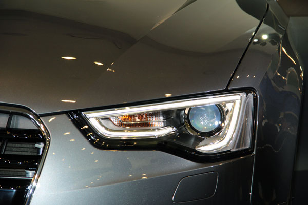 投向全新Audi A5 Coupe豪華雙門轎跑車和A5 Sportback新四門轎跑嶄新耀眼的車頭,散發出傲氣不凡的氣勢,而稜角分明的全新楔型燈組,完美地將氣體放電式頭燈以及極線LED識別燈涵蓋其中,一氣呵成的導光線條設計結合了Audi最先進的光纖導引LED光源科技,無論白天或黑夜都是耀眼的吸睛焦點,以傲視群倫之姿照亮前方路程;其他部份如更具立體感的引擎蓋與全新設計的前/後保險桿、採用鑽石形切角設計附亮黑色烤漆橫柵的新款Audi Single-frame水箱罩,再搭配新式樣的前霧燈組、進氣口與側進氣壩,以及造型與尺碼十分多樣的鋁圈選擇,都讓新車具備了更強烈的運動跑格與不凡氣勢!