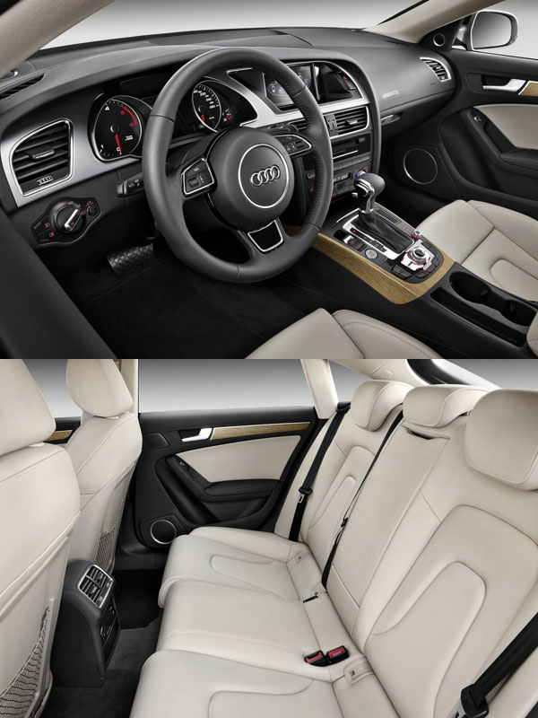 Audi原廠特別針對全新A5車系的內裝鋪陳同步啟動勁化升級工程,除了嚴選更好的內裝材質讓車室座艙的整體質感大幅升級,全新Audi A5 Coupe和A5 Sportback全車系均將Milano真皮座椅列為標準配備,細緻柔軟的皮革材質不但具備絕佳觸感,更擁有極為出色的乘坐舒適性,Audi原廠提供了豐富齊全的客製化選配,包括八種全新內裝顏色、六種全新飾板款式等多樣性的內裝部品與材質選擇,讓準車主們能夠自行挑選最適合個人喜好的內裝搭配組合。