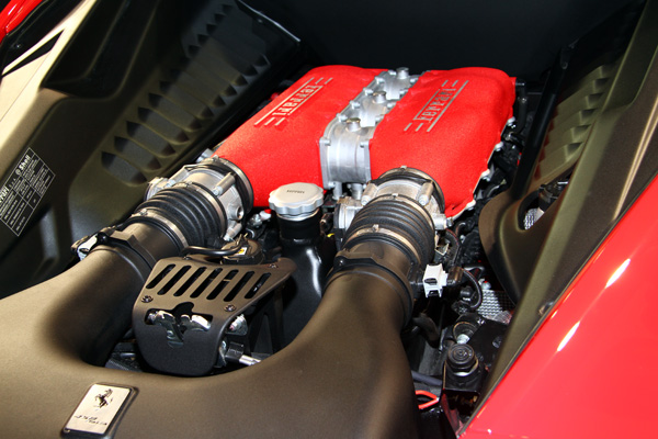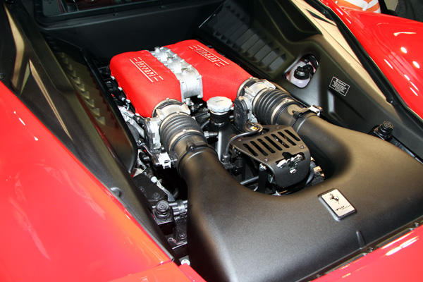 引擎為乾式油底殼 90 度夾角 V 型 8 汽缸,排氣量 4499 cc,採中後置配置。本具引擎採用全新設計,轉速最高可達 9000 轉,是道路用車首見,壓縮比 12.5:1,最大馬力570ps。相當於每公升127ps 的強悍馬力輸出,是自然進氣引擎的新極限。扭力方面當然充沛飽滿,6000 rpm時即可達到55.1kgm(540Nm) 的扭力,3250 rpm時可輸出 80% 的扭力,使全轉速速域的轉速都可快速爬升,且每公升約12.5kgm(120 Nm)的動力輸出亦締造了另一個記錄。