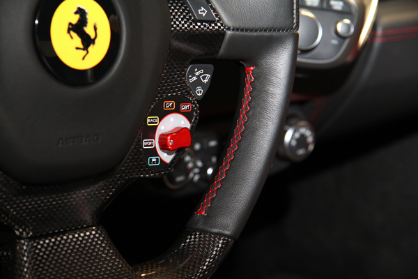 為了強調 Ferrari 道路用車和 F1 賽車緊密連結的強烈作風,所有主要操控介面整合在方向盤上,達到隨時可提供最佳的車身控制。458 Italia 配備更具跑車設定的競技型 manettino 切換開關,讓駕駛可以有多種賽道導向的電子控制參數。F430 上的 ICE 模式設定,由 CT-Off 模式取代,可關閉循跡控制,維持穩定度控制。