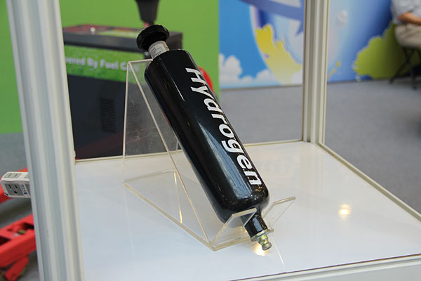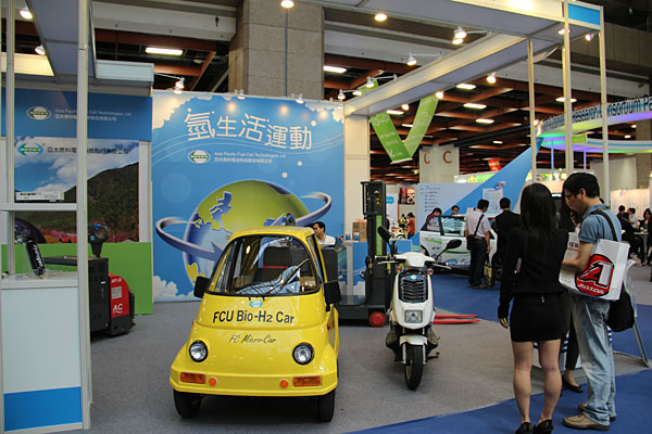 亞太燃料電池在今年電動車展中,展出了全球首款獲政府掛牌認證不耗油、零廢氣且達量產水準的氫燃料電池電動機車。