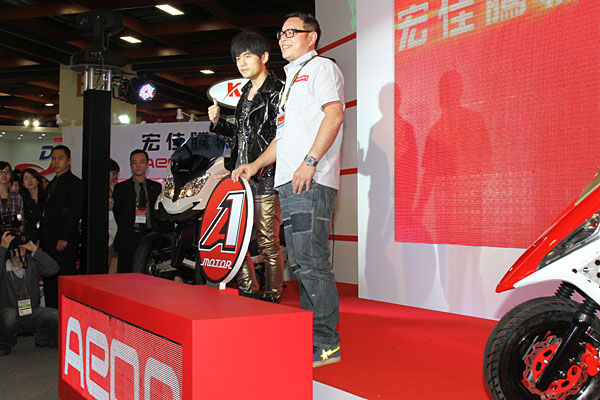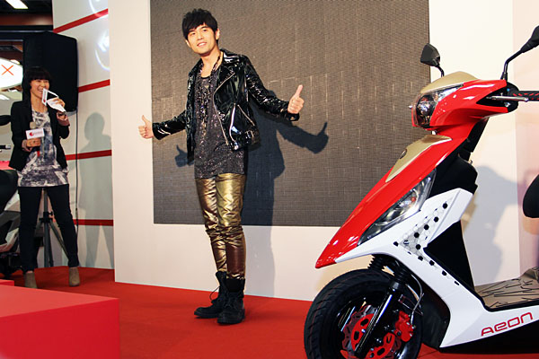 選擇於「第7屆台灣國際機車展」中,台灣機車品牌Aeon宏佳騰,為了一展搶攻台灣機車市場、擴張市佔版圖的企圖心,特別邀請亞洲天王周杰倫擔任品牌代言人,除先行拍攝第一波旗下獨有產品—3D350三輪車款廣告以外,也同場發表了全新運動型速克達機車「ÖZ驚嘆125/150」,搭載諸多豪華配備,車價則展現誠意,分別為新台幣69,800元與74,800元。