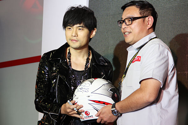 周杰倫現場也親筆於安全帽上簽名,未來將贈送給活動期間進行預購的消費者。