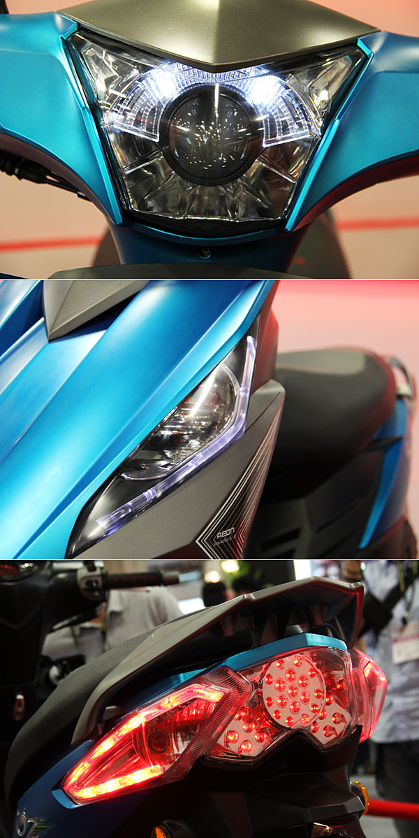 ÖZ驚嘆125/150於前後燈組設計上相當用心,導入如專利魚眼式大燈、結合鷹眼式LED晝行燈的方向燈、LED科技的後方向燈與LED尾燈等。