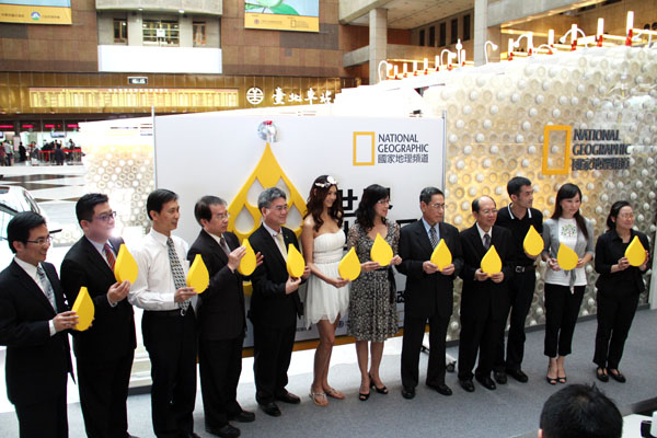 「2012年世界地球日活動 節能保島總動員」記者會中,與會貴賓與地球日代言人林嘉綺,以及協辦單位代表於「Eco House」前合影。