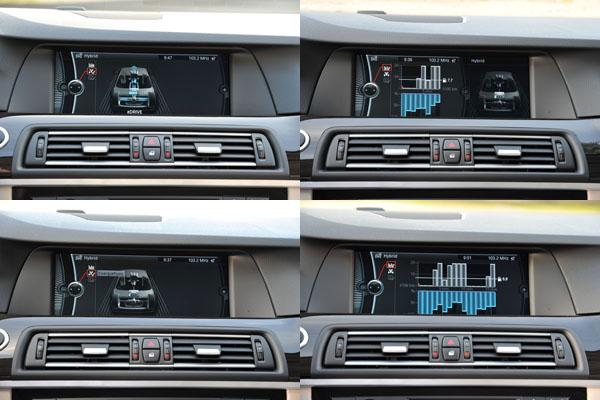 透過全新ActiveHybrid 5 儀錶板內轉速表與iDrive控制系統顯示螢幕,駕乘者可以隨時得知全新ActiveHybrid 5的能源流量與恢復狀態、鋰電池的儲電量、旅程中引擎與電動馬達的動力分配狀態等資訊,精準掌握車輛狀況。