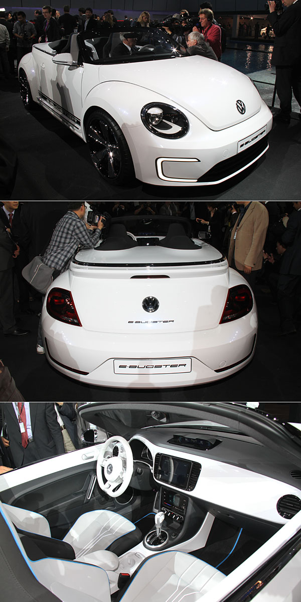 首先現身的,乃是VW此品牌。如先前Carstuff所預期的,選擇於此車壇盛事中,VW發表了新世代Beetle的敞篷概念車型,且以今年年初底特律車展現身的E-Bugster Concept車型為基礎、移除車頂後現身,當然,此輛E-Bugster Speedster Concept這也就是未來新世代Beetle Convertible的量產雛型。
