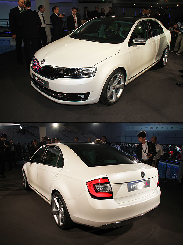 於本次的VW集團之夜,Skoda如同Audi般,沒有太多了驚喜,推出了2011年德國法蘭克福車展已推出的Mission L Concept概念車型。當初問世便清楚展現進軍中國市場企圖心的Mission L Concept,極有可能成為品牌旗下第六款車系,專門進攻新興汽車市場,但關於此輛車的詳細規格與動力系統數據,仍尚未有更進一步的訊息。
