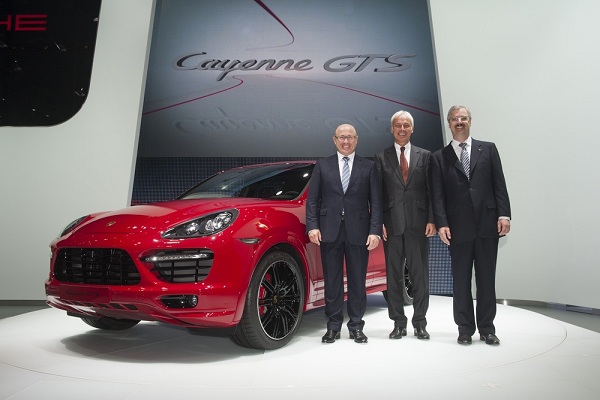首先是全球首發Cayenne GTS的發表,新一代Cayenne GTS定位在S與Turbo之間,配有調校更運動化的懸吊系統,更強勁的V8自然吸氣引擎,以及與Turbo版相近的車身外形。保時捷新款GTS車型擁有兩種新的外觀噴漆顏色,橄欖石金屬色與胭脂紅色是以往舊款車型所沒有的。新款的Cayenne GTS底盤高度比Cayenne S降低了24mm,因此高速過彎的穩定性更佳。