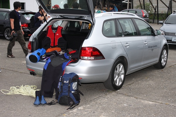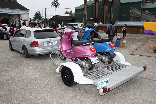 此次適逢VW總代理標達汽車,耗費了大量的精神與物資,邀請媒體到台東,一起體驗30輛Golf與Pasat的Variant車型所帶來的十多種Life Style的變化,,可以裝載各種戶外娛樂用品,從最常看到的釣竿、露營器具、單車等等,到寵物狗狗、獨木舟、水上摩托車等等,甚至現場還放了兩台尾車,一台放著哈雷機車,另外一台放著兩台Vespa機車,也由現場工作人員示範了由Passat Variant與Golf Variant的拖行尾車示範,並且強調這些尾車都領有牌照,可以合法上路,將來也會與VW搭配合作全省的展示。現場很多的大朋友與小朋友,對於尾車跟上面的哈雷機車,熱衷程度可說是滿點,小朋友們紛紛跨上去拍照留念!