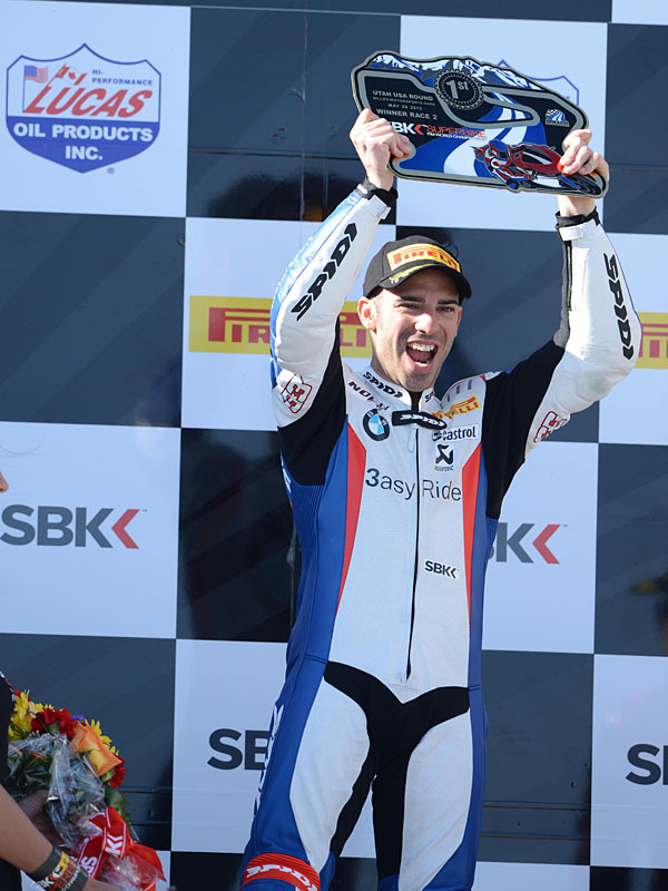 世界超級摩托車賽(WSBK)美國Salt Lake City分站對BMW Motorrad來說是個意義非凡的一站。廠隊車手Marco Malendri與愛車BMW S 1000 RR於Race 1創下1:48.867分的驚人最速單圈後奪得亞軍,Marco並在Race 2最後一圈前超越Honda車手Rea,以冠軍之姿越過終點方格旗!總積分方面Marco以142.5分由第5名躍升至第2名,而隊友Leon Haslam則以103分位居第6,BMW同時也以176分位居車廠排名第2,這是BMW自上回英國Donington賽道Race 1獨得冠亞軍後的再次勝利!