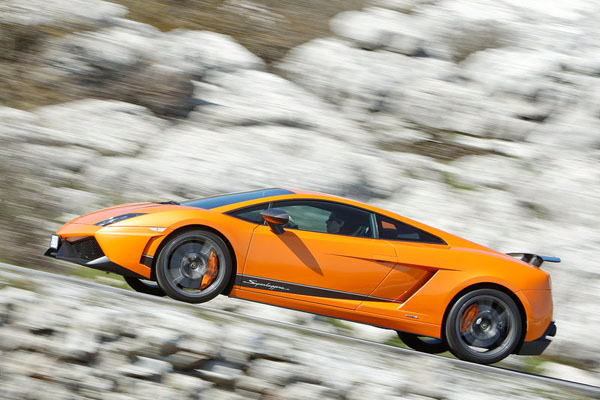 Lamborghini Gallardo LP 570-4 Superleggera是一款競技風格濃厚、並具有狂暴加速力的全方位超級跑車,並以絕佳的操控平衡性與輕量化高科技著稱。它所採用的5.2升V10引擎,排氣效率輸出達每公升近110ho,並能在引擎轉速8000rpm時迸發出570hp最大馬力,驅動僅1340kg的車重,進而創造出2.35kg/1hp的最佳馬力重量比。