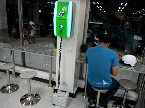 低碳遊澎湖 澎湖7-11店內也享有電池快速充電服務。