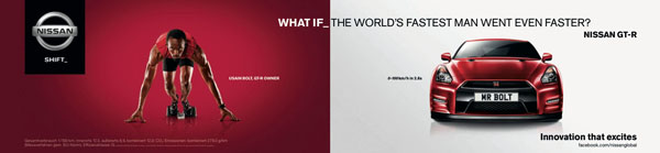 從問世以來,R35 GT-R受到全球車壇矚目,以其所屬定位,不僅有著超乎同級的加速能力,與頂尖超跑抗衡,GT-R的加速表現也毫不遜色。以此超強的加速表現,Nissan發表了全新一波的全球廣宣策略,結合當前的奧運風潮,找來了知名運動員代言,誰最適合強調GT-R的性能?當然就是目前全球最快的男人—牙買加短跑健將Usain Bolt。