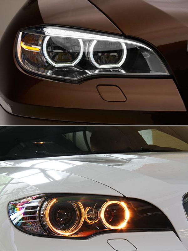 全新X6將LED主動式轉向頭燈列為X6 M車型標準配備(上圖),X6 xDrive35i選配需加價14.6萬,X6 xDrive40d則為15.9萬元,如無選配,頭燈造型則如下圖。