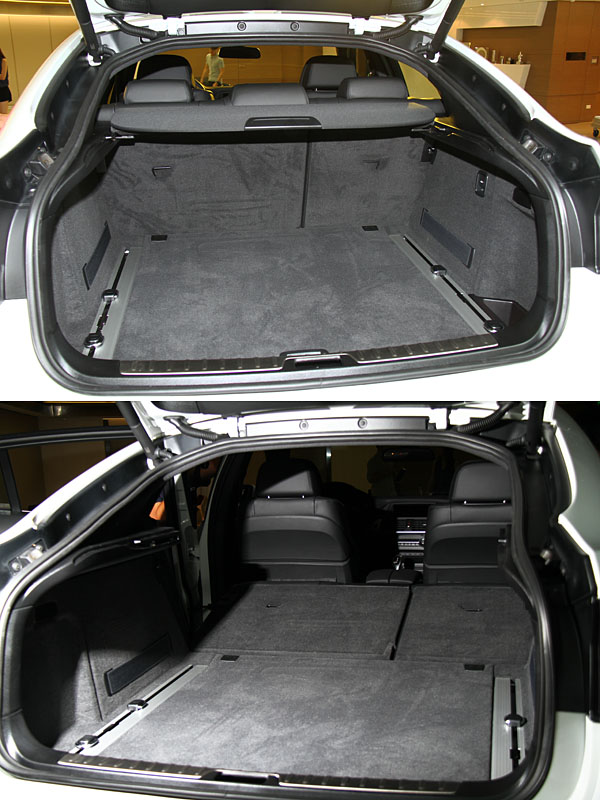 X6兼具休旅車與跑車的優勢,充裕的行李置放空間來自運動休旅車的產品特點,從570公升到6/4分離可折式後座椅背放倒後的1,450公升的行李廂空間,在乘坐四人後,仍能創造出負載四組高爾夫球具的大肚量。