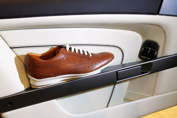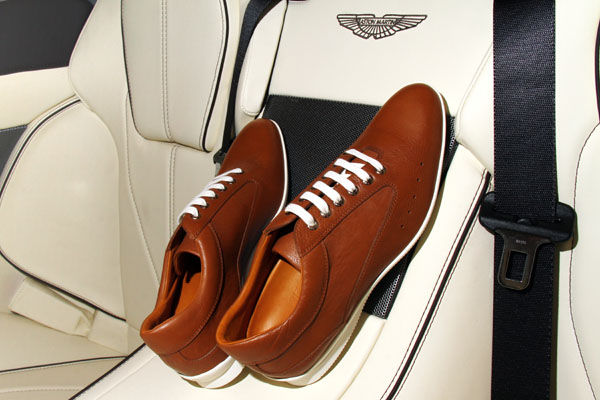 俐落的鞋型與流線的縫合線條,顯現出與Aston Martin運動感的充分對應。
