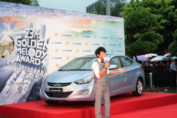 擔任這一次星光大道禮賓車隊的是現代汽車最新上市車款ALL NEW Elantra,以「風動美學」為名,載著參加金曲盛會的貴賓入場星光大道,在6月23日的台北小巨蛋夜晚,讓眾星更加的閃亮耀眼,引人注目。現代汽車總代理南陽實業一向是三金(金曲、金鐘、金馬獎)的常客,對於禮賓車隊一向以嚴選的態度來跟大會配合,讓最適合的產品來襯托出與會眾星的質感。這一次金曲獎星光大道的禮賓車依然是南陽實業的嚴選,甫上市的ALL NEW Elantra本身擁有全球37個獎項,甚至是2011年全球最暢銷車款第二名以及2012年北美年度風雲車的光榮頭銜及榮耀。