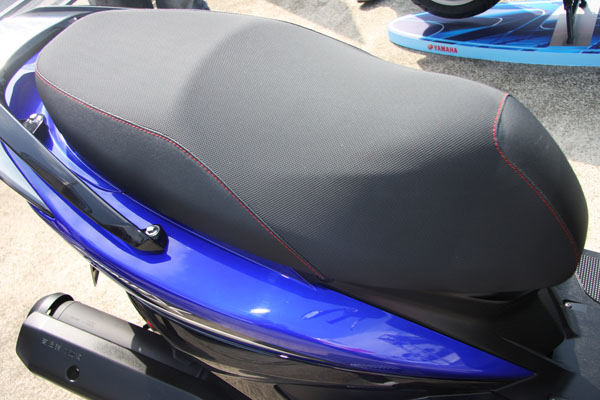 質感風(上)車型中,導入Two Tone雙彩車色,搭配鍍銀立體Logo飾板與座椅YAMAHA立體燙印;運動風(下)則以車身貼紙為主。