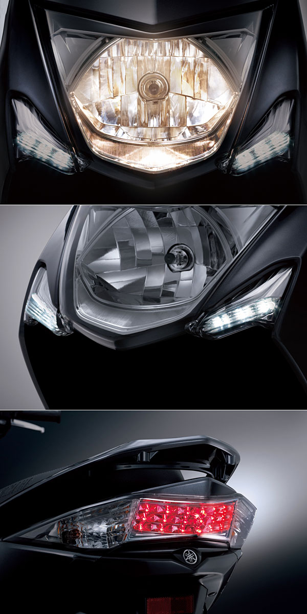 延續前兩代於外觀造型所塑造的運動質感,第三代Cygnus-X設計面保有原先的豪華特質,並期望能塑造更優越的運動感,將車頭內縮並順勢將車尾上抬,車側輔以側飾條,加強與過往的差異性。為了增加侵略性,車頭大燈採取懸浮設計,規格為歐規H4燈泡,兩側搭配時興的白光LED定位燈,而車尾則延續先前的LED科技,並採橫向水平造型。質感風的車型中,導入Two Tone雙彩車色,車色提供白銀、深灰銀與深紅銀;搭配鍍銀立體Logo飾板與座椅YAMAHA立體燙印;運動風則以車身貼紙為主,搭配黑、藍黑與黃黑車色,提供更為純正的性能個性。