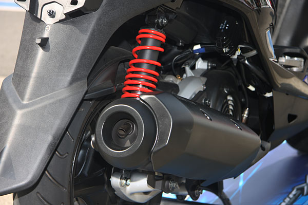 變速系統重新設計,改良了皮帶減速比與大彈簧特性,小彈簧也從14kg提升至18kg,荷重提高變更離合器接合速域,可進化起步加速動能。
