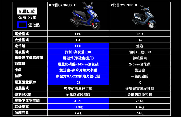 全新第三代Cygnus-X與前世代規格表比較: