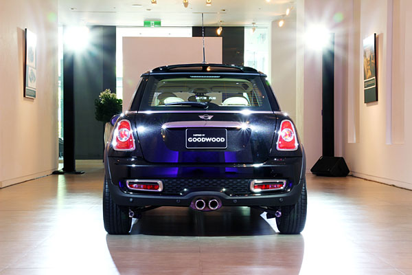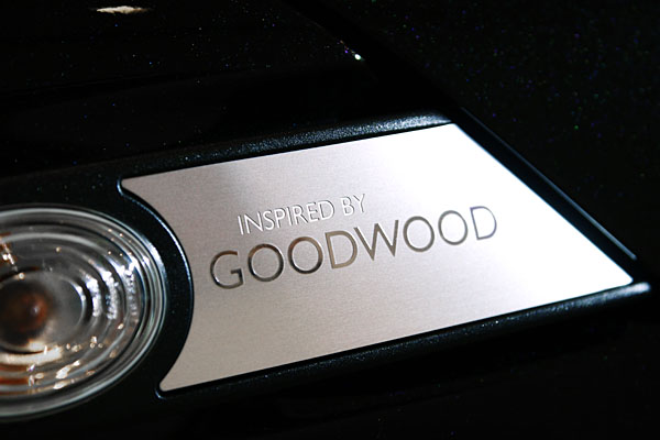 Mini Inspired by Goodwood由Rolls-Royce首席內裝設計師Alan Sheppard設計。外觀採用Rolls-Royce專屬Diamond Black車色,精緻鋁質車側方向燈飾板上綴以細膩的〝Inspired by Goodwood〞銘刻,並搭配Mini Multi Spoke 17吋輕合金鋁圈。