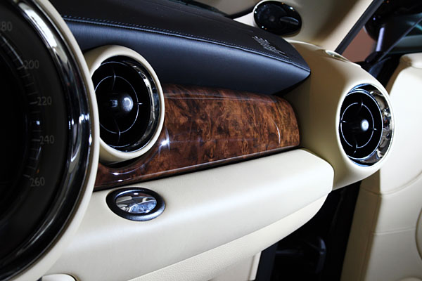 Rolls-Royce於Goodwood工廠為Mini特別訂製的Walnut Burr胡桃木木紋飾板。