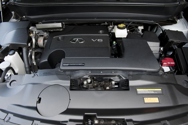 動力系統方面,JX搭載原廠代號VQ35DE的V6引擎,擁有255hp/6400rpm最大馬力,與32.9kgm/4400rpm峰值扭力,搭配Sport-tuned CVT運動化無段自動變速系統,搭載全時四輪驅動的旗艦款,擁有平均9.7km/L的出色成績,而採用前輪驅動的豪華款,平均油耗更達11.1km/L(註1),並獲得了經濟部能源局的一級油耗認證(註2)。