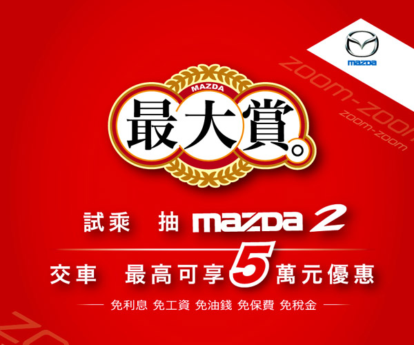 相關活動內容請洽MAZDA各地經銷商,或上MAZDA Taiwan官方網站http://mazda.com.tw 查詢。快把握機會來MAZDA試乘抽靚車、購車享大賞!