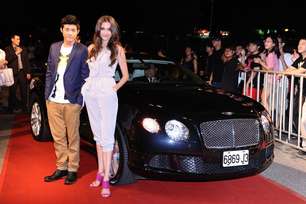 王柏傑與瑞莎以及Bentley Continental GT合影。
