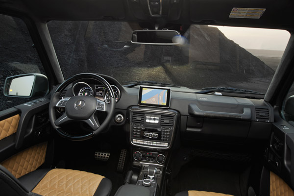 G 63 AMG的內裝現在採用全新單色調的designo真皮內裝,且皮革排檔桿上也有AMG的徽飾,車門檻也搭配具AMG字樣的不鏽鋼AMG門檻踏板,且AMG仕樣的儀表板也具有特殊的色彩搭配。此外,強大的Harman Kardon Logic 7環繞音響、COMAND線上媒體介面系統、與DAB(Digital Audio Broadcasting)數位音訊廣播音響系統,都讓新年式G 63 AMG擁有最佳的內裝實用機能。