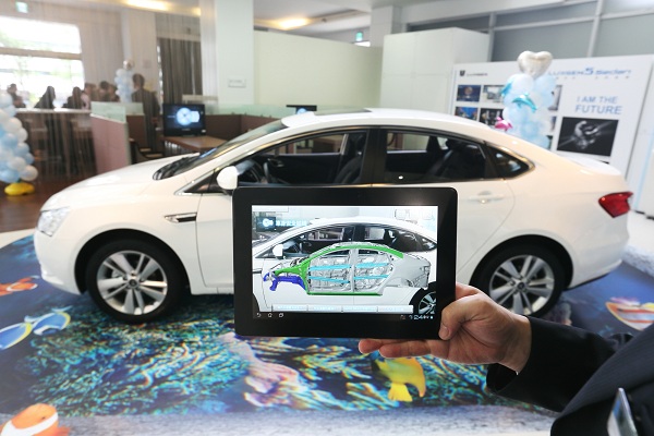 3. AR賞車區:賞車最注重的莫過於眼見為憑,顧客不僅可親自觸摸、試坐、操作之外,Luxgen更導入AR擴增實境(Augmented Reality)輔助消費者更加了解車輛,也就是以平板電腦對準實車進行拍攝,即會出現X光透視效果,絕妙地讓車體剛性結構、引擎動力設計在眼前360度翻轉觀賞,加上模擬安全氣囊的彈出位置等,讓顧客更全方位理解車輛特性。
