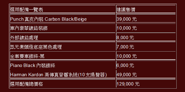Harman Kardon高傳真音響系統(10支揚聲器)也為選配項目。