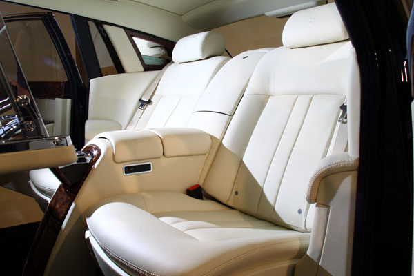 而後座陳設上,後排座椅比前排座椅高出 18毫米,後排乘客可以直接欣賞到長引擎蓋優美的輪廓和其下端的精緻「歡慶女神」。前排和後排座椅的皮革接縫數量從五條減少到三條,更突出了真皮質地的天然紋理。