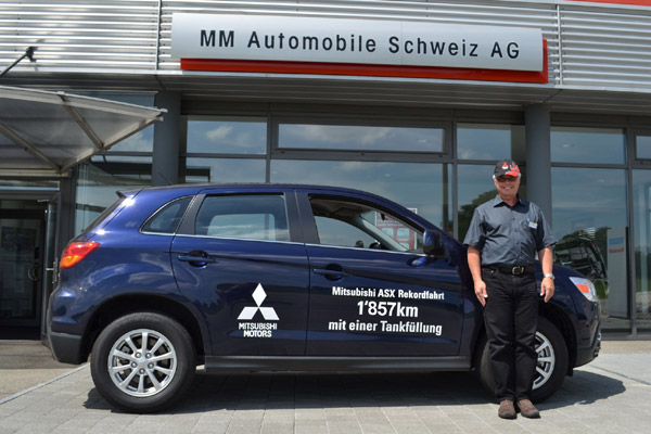 ↑ 瑞士機師Felix Egolf駕駛Mitsubishi ASX DI-D 1.8 2WD柴油車,以一桶油完成1,857公里的長征。