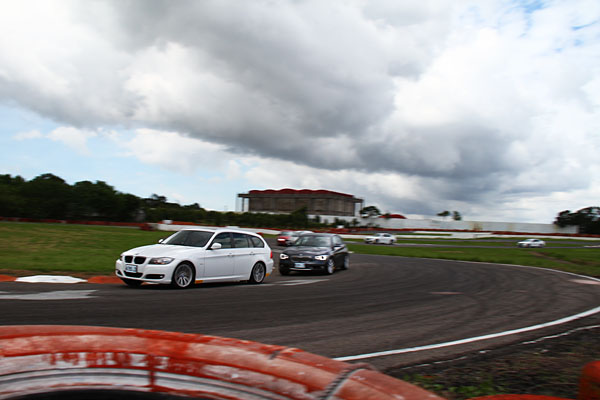 而在六輛試駕車輛前方的,乃是BMW原廠教練Klaus Heimerl駕駛的320d Touring領軍,帶領大家尾隨以保持正確路線與速度節奏,採取一人一輛車駕駛四圈的模式,一趟下來,每位駕駛會有共計24圈體驗機會,了解套件安裝後的差異程度。