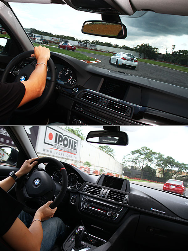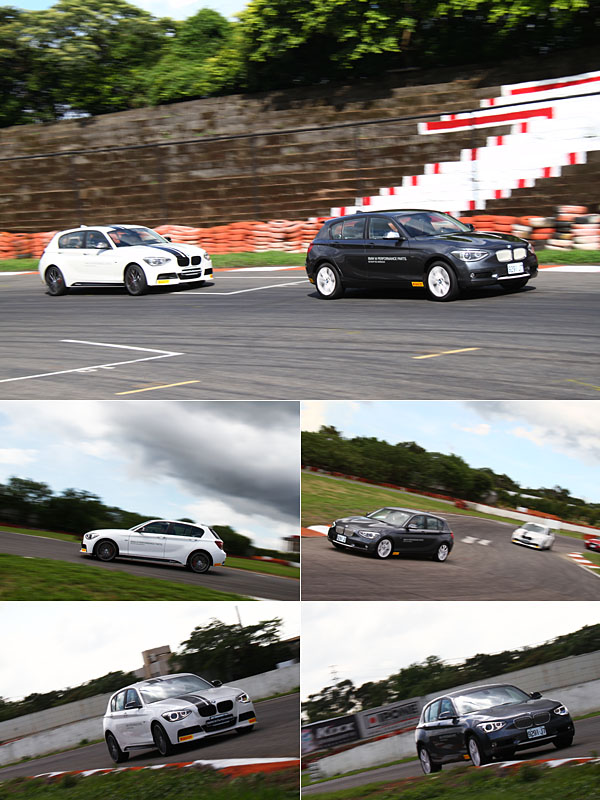 為了深入體驗安裝M Performance高性能套件後與原廠車款的差異,於賽道上所安排的,包含有三輛原廠式樣的120d、320d與520d以外,另外穿插了安裝M Performance高性能套件的120d、320d與520d車型,意為原廠組與改裝組同場體驗,但由於部分M Performance套件尚未完全抵台,因此上述套件並非全數上身,無法全面體驗,著實可惜。