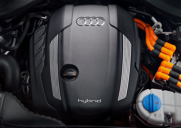 全新A6 hybrid油電複合動力車的電動馬達由一具交流永磁同步碼達所伺服,其所輸出得交流電力最大功率達54hp/21.4kgm,而驅動馬達的電力由置於車後行李廂下方的防撞區域中的鋰(Lithium-ion)電池系統所供應,精巧的體積和重量讓全新A6 hybrid油電複合動力車仍保有標準行李廂容積。該具鋰電池組更備有雙模式空氣冷卻系統,在電池溫度較低時,引導車室內的冷空氣進行冷卻;一旦溫度高於一定程度,系統則會啟動獨立的冷卻迴路,該系統將會利用車內的恆溫空調系統作為散熱裝置,保持鋰電池系統的正常作動溫度。